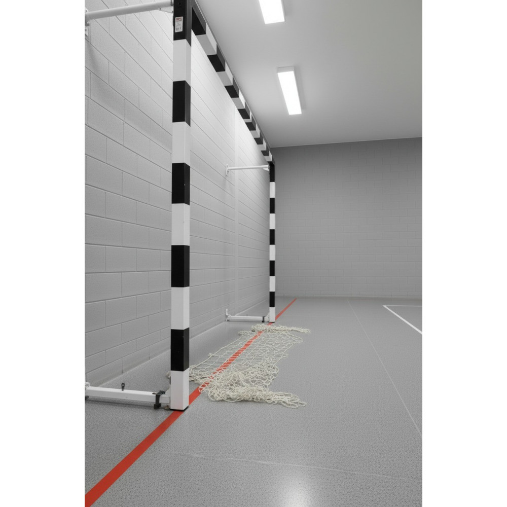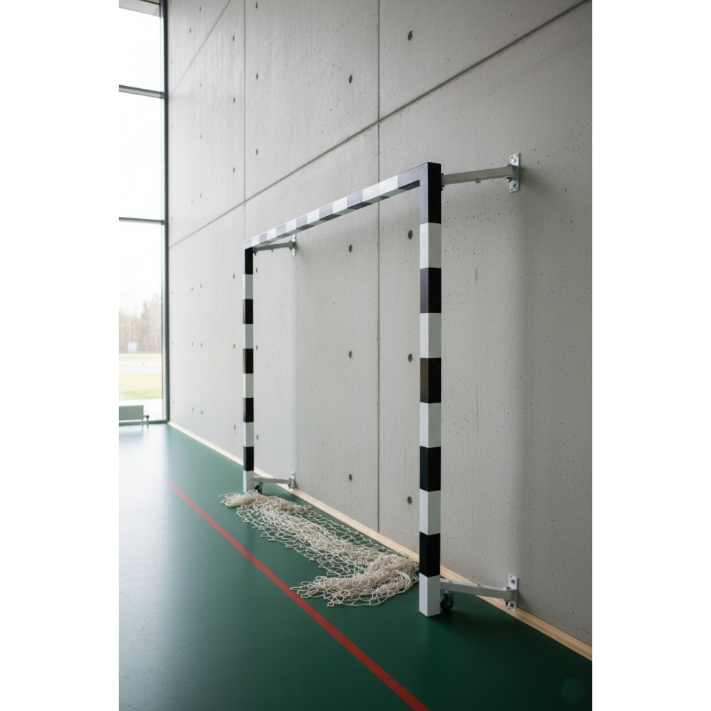 Ворота для мини-футбола и гандбола 2х3 м – складная пристеночная модель, выполненная из стального квадратного профиля 80х80 мм с порошковым покрытием, идеально подходит для использования в спортивных залах.