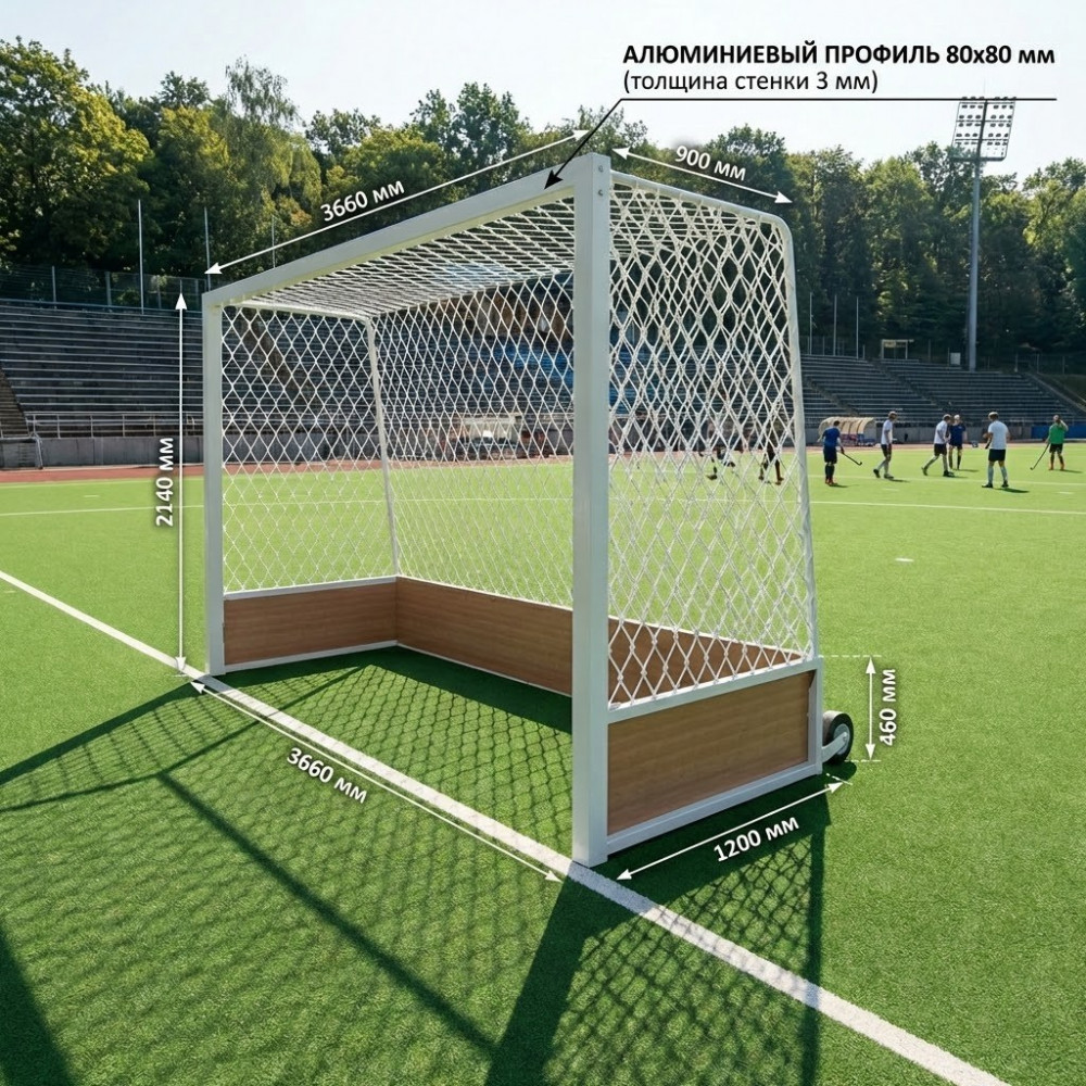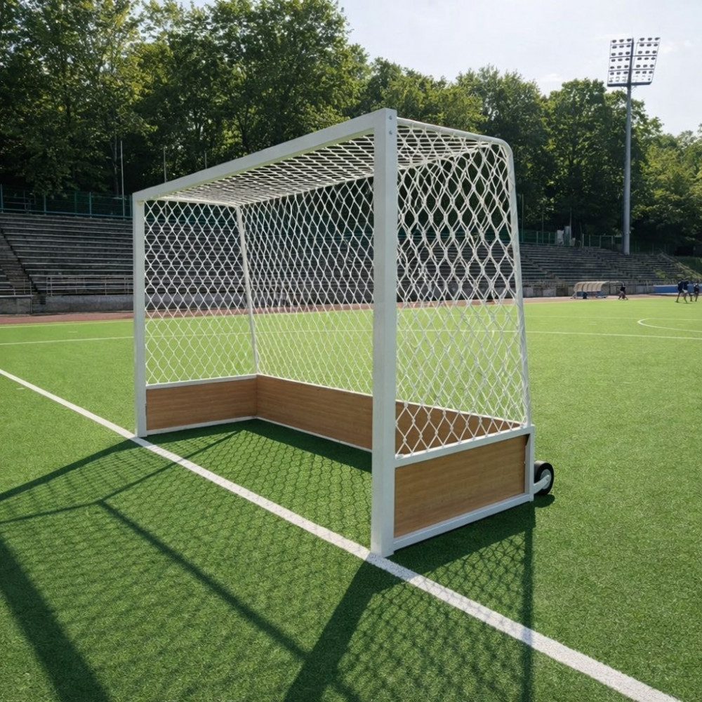 Профессиональные алюминиевые ворота для хоккея на траве, разработанные для официальных матчей и интенсивных тренировок.